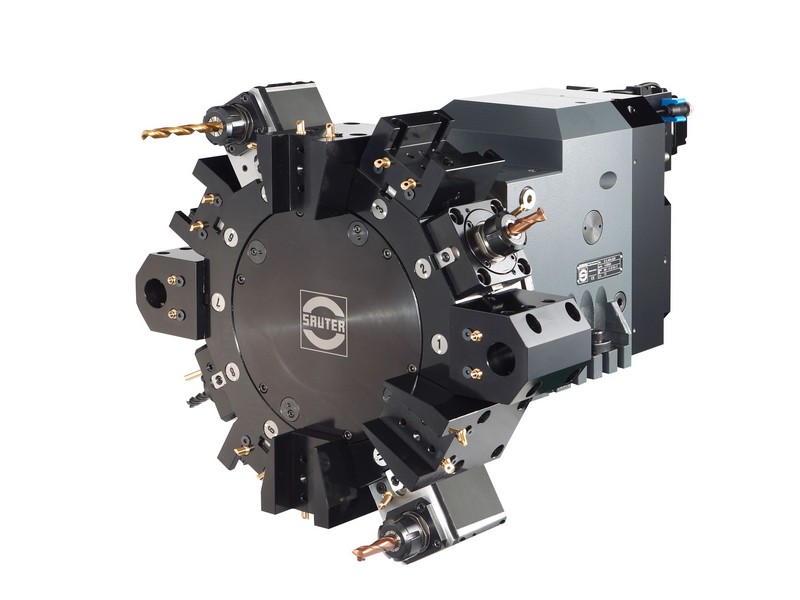 Sauter crown type turret with 4, 6, 8, tooling & having HSK 40, 50, 63, 80, 100 size live tooling for high production live machining